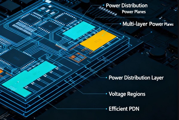 - Vias de energia: Use vias maiores (por exemplo, 12 mil de diâmetro/16 mil de perfuração), coloque várias em paralelo para reduzir a impedância.